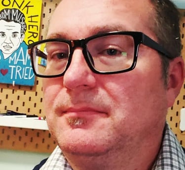 Since 2005, Chris has been active in the folk art community and paints influential figures in American Blues and Folk music. In 2020, Chris began to explore his love of education through graphic design by creating books and illustrations under the brand Officially Mellow.